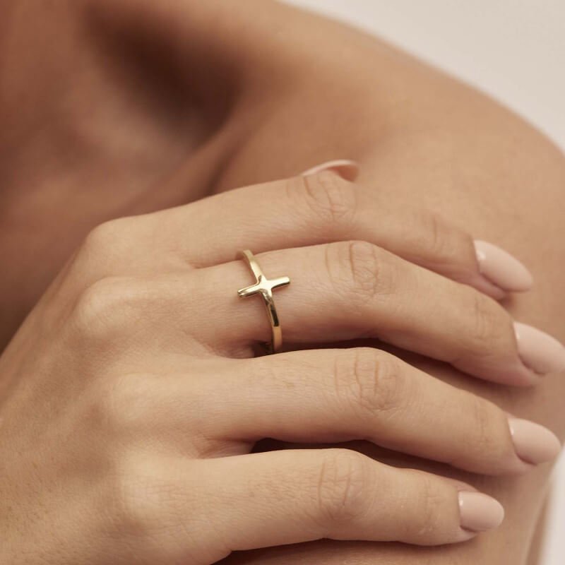 Anillo cruz. Simple e importante a la vez. Plata 925 con baño oro 18 kt. Peso 3,0 gr