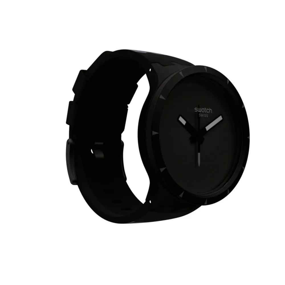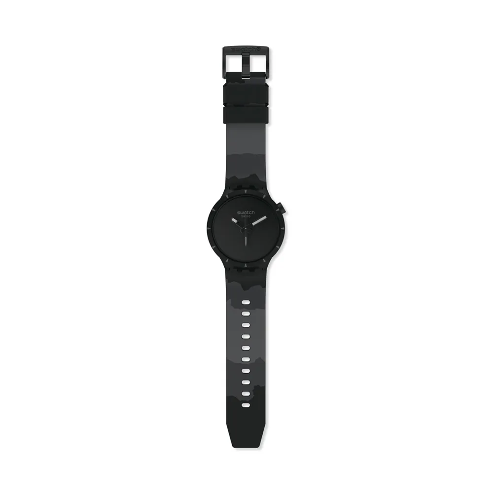 El nuevo modelo de Reloj Swatch BIG BOLD BIOCERAMIC de tamaño oversize cuenta con una robusta correa de silicona verde mate con estampados en distintos tonos de verde. Su caja y bisel, fabricados en BIOCERAMIC, también vienen en el mismo color verde mate. Su maciza esfera verde acentúa el acabado blanco y superluminoso de sus agujas negras. El segundero inspirado en la aguja de una brújula intensifica la experiencia.
