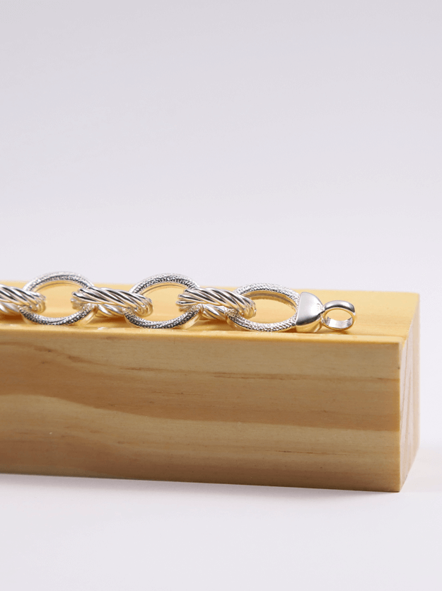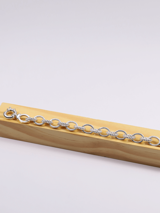 pulsera de plata eslabones de cadena labrados y torzados, con importante cierre marinero.