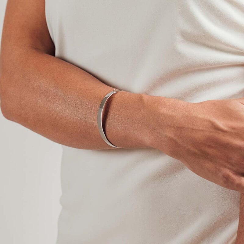 Belleza clásica y atemporal con nuestra pulsera esclava con cierre de cadena. Para usarla sóla con con un layering de pulseras, puedes grabarle algun mensaje o fecha especial que la convertirá en única para ti. Esta elegante pulsera está realizada en Plata 925 .