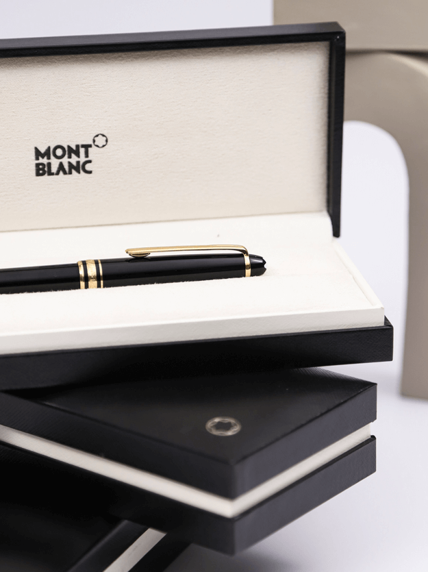 El rollerball lujoso Meisterstück Classique se convierte en un icono exclusivo del diseño. El capuchón y el depósito están elaborados en resina preciosa negra con el emblema Montblanc blanco incrustado.